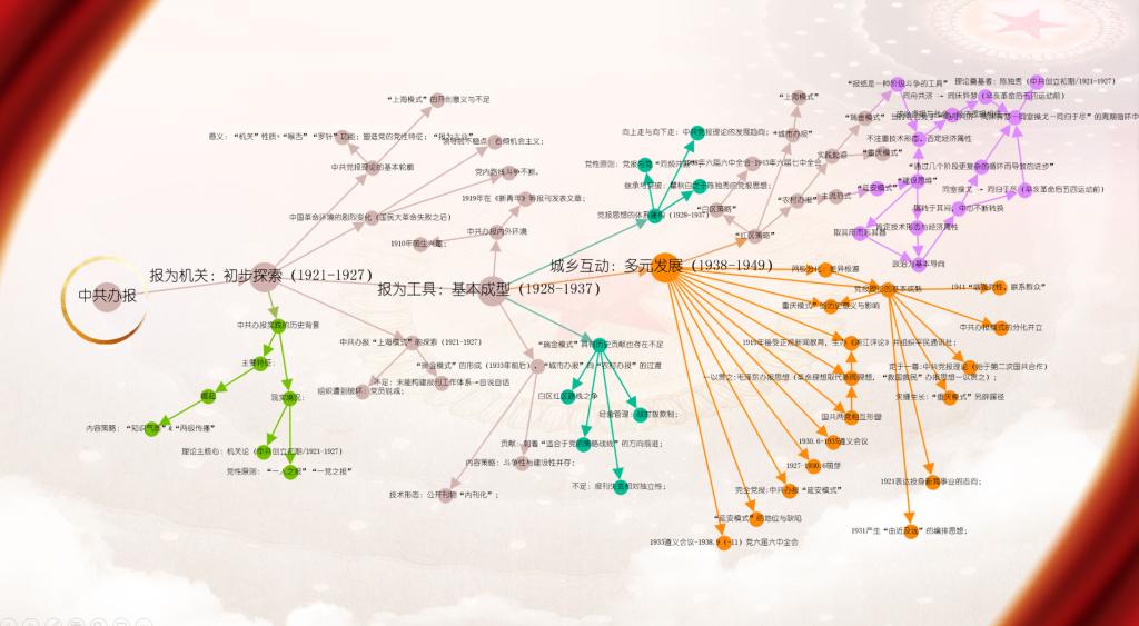 此次公司参赛组获奖作品名为“中国共产党报刊数据库及可视化(1921-1949)”。从去年12月开始,团队成员在太阳集团电子游戏周辉老师的指导下,通过跨学科合作,完成了从选题、文献史料搜集整理、数据预处理、可视化分析、交互可视化实现等系列任务,最终完成了一组能交互式呈现“1921-1949年间中国共产党办报历程和发展脉络图”的可视化作品。