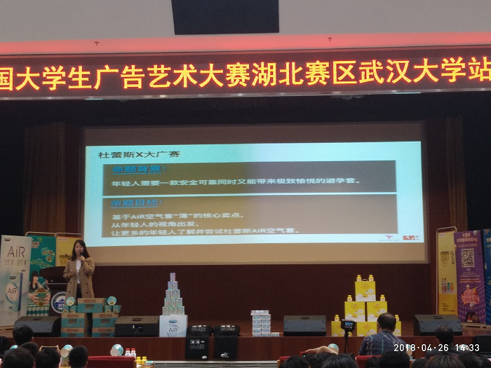 首先上台的便是杜蕾斯的姚女士,她一开始就用提问的方式与台下同学进行了良性互动并分享了她的奖品,现场氛围一度高涨。随后,她简单介绍了杜蕾斯的品牌故事与文化内涵,让我们看到了不一样的杜蕾斯,并号召我们创造出个性又凸出功能的创意型广告作品。