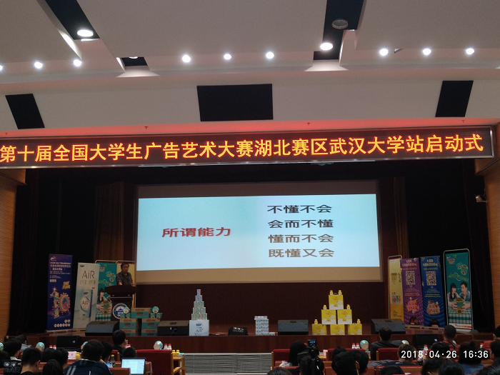 启动仪式正式开始,在主持人简单地介绍仪式概况和到场来宾之后,武汉大学新闻与传播学院副经理兼广告系系主任姚曦上台发表致辞,他首先对各位嘉宾的到来表示感谢,然后宣传此次仪式的意义,号召广老员工积极参与并预祝此次仪式取得圆满成功。