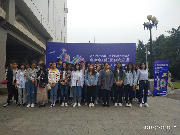 4月26日中午,在熊蕾老师的带领和组织下,17级新闻传播专业的部分员工坐上了前往武汉大学的专车,来到了武汉大学人文馆报告厅,参加第十届全国老员工广告艺术大赛湖北赛区武汉大学站的启动仪式,并在大门前留下了我们的合影,希望通过此次活动增长我们我们对广告艺术的了解,燃起对广告的兴趣。