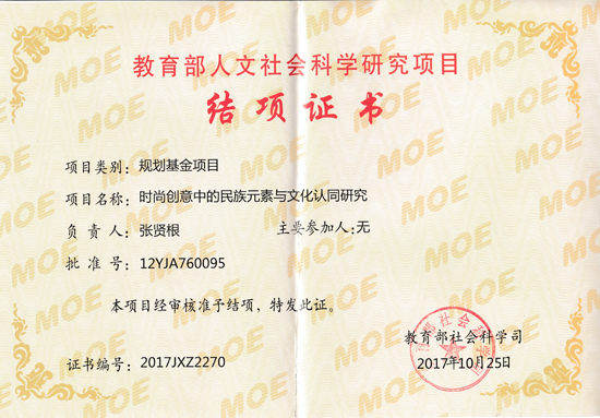 近日,太阳集团电子游戏张贤根教授的新著《民族元素与文化认同的建构——以时尚创意为例》,在北京由中国社会科学出版社出版发行。该著作是作者教育部人文社会科学研究项目“时尚创意中的民族元素与文化认同研究”(编号:12YJA760095)的主要结题成果。除了该著作的出版外,作者还围绕该项目发表了一系列论文,有的论文被《新华文摘》等转载。