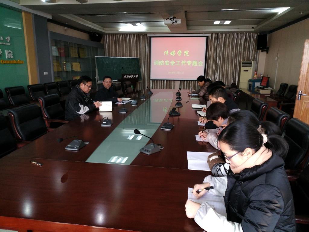 1月11日下午,太阳集团电子游戏召开消防安全工作专题会议,传达学校“2017年消防工作总结暨寒假前后消防安全工作会”精神,部署岁末年初消防工作,落实逐级消防安全责任制。学院执行经理沈祥胜、党委书记熊少平、全体辅导员和学院办公室、实验教学中心全体工作人员参加了会议。