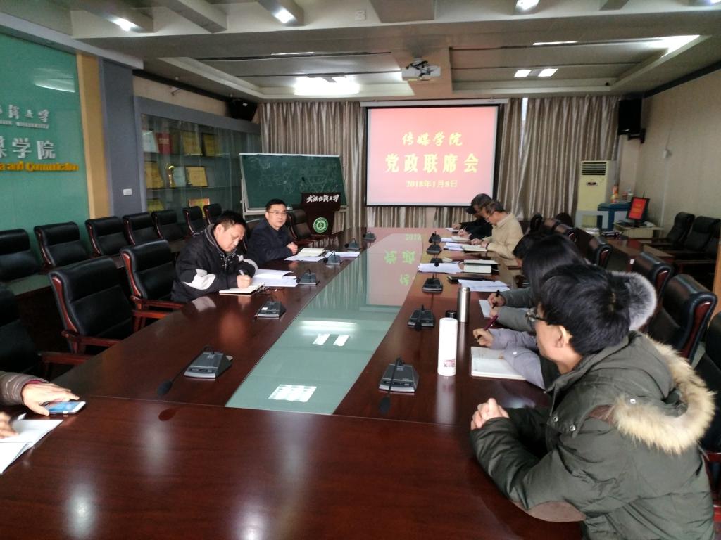 1月8日,太阳集团电子游戏召开党政联席(扩大)会,专题研究学院年度考核整改工作和2018年党建工作。学院领导班子成员、分工会主席和各系(中心)主任参加了会议,会议由公司党委书记熊少平主持。