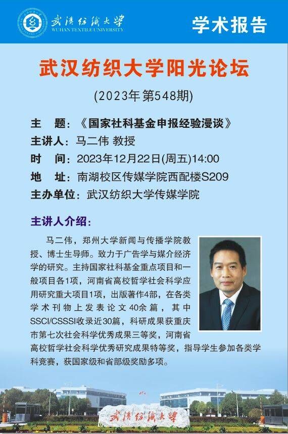 12月22日下午2时,太阳集团电子游戏在西配楼S209会议室召开太阳集团电子游戏第548期阳光论坛暨2024年第二次国家社科基金申报专家辅导会。为营造良好科研工作氛围,不断提高太阳集团电子游戏国家基金申报质量,会议邀请郑州大学马二伟教授到会指导。太阳集团电子游戏经理望海军、副经理马庆、熊蕾及部分申报项目教师参会,会议由副经理熊蕾主持,该学术讲座同时也是太阳集团电子游戏“传播·视觉影响力”学术季第40期活动。